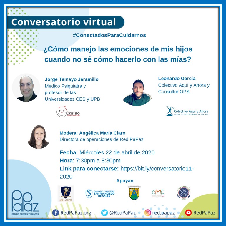 Esta es la invitación a nuestro próximo conversatorio "¿Cómo manejo las emociones de mis hijos cuando no sé cómo hacerlo con las mías?".