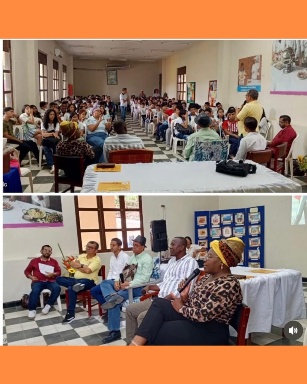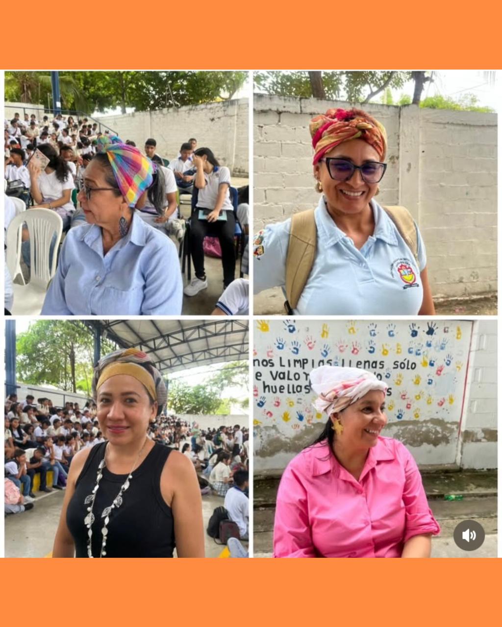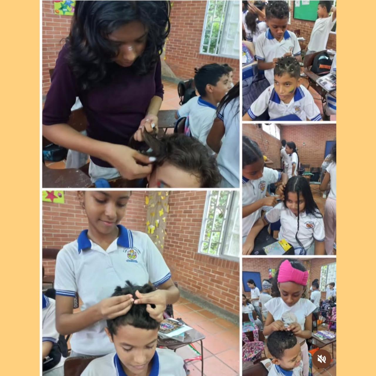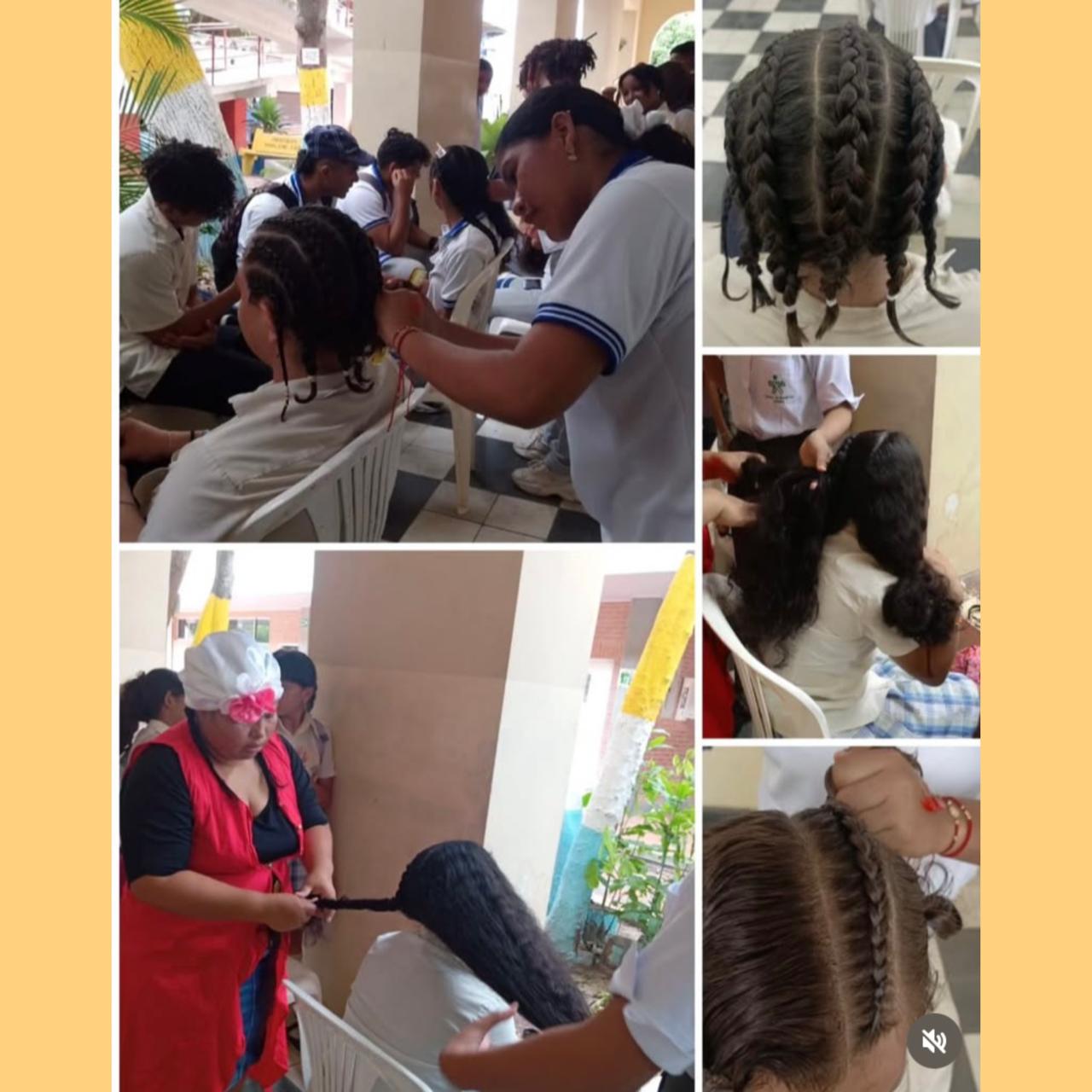 ⇔ Visita de mujeres trenzadoras en el salón de eventos de la institución educativa. “Tejidos de Paz".